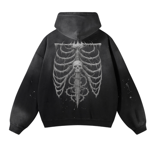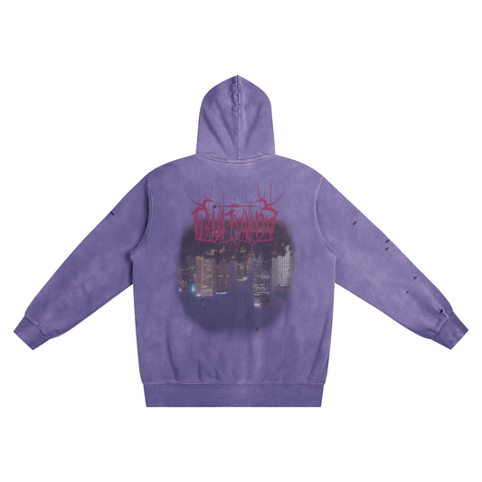 Aura Vintage Washed Frayed-Hem Hoodie – Aged Stone-Wash Fleece Pullover for Urban Street Style