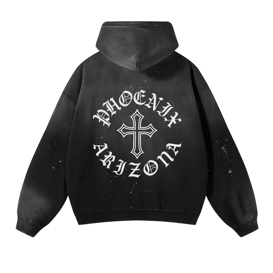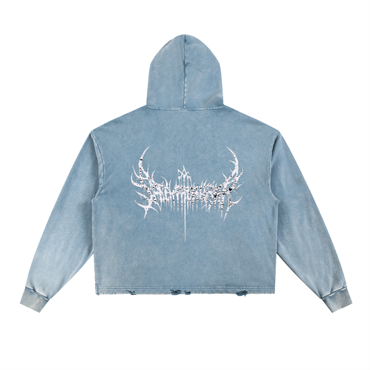 Aura Vintage Washed Frayed-Hem Hoodie – Aged Stone-Wash Fleece Pullover for Urban Street Style